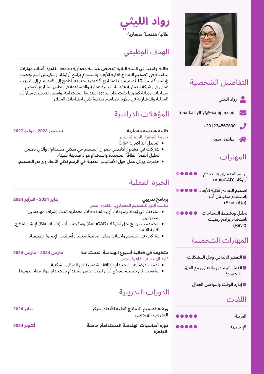 توفر هذه المعلومات التفصيلية لصاحب العمل فهماً شاملاً لخلفيتك التعليمية ومجالات خبرتك.