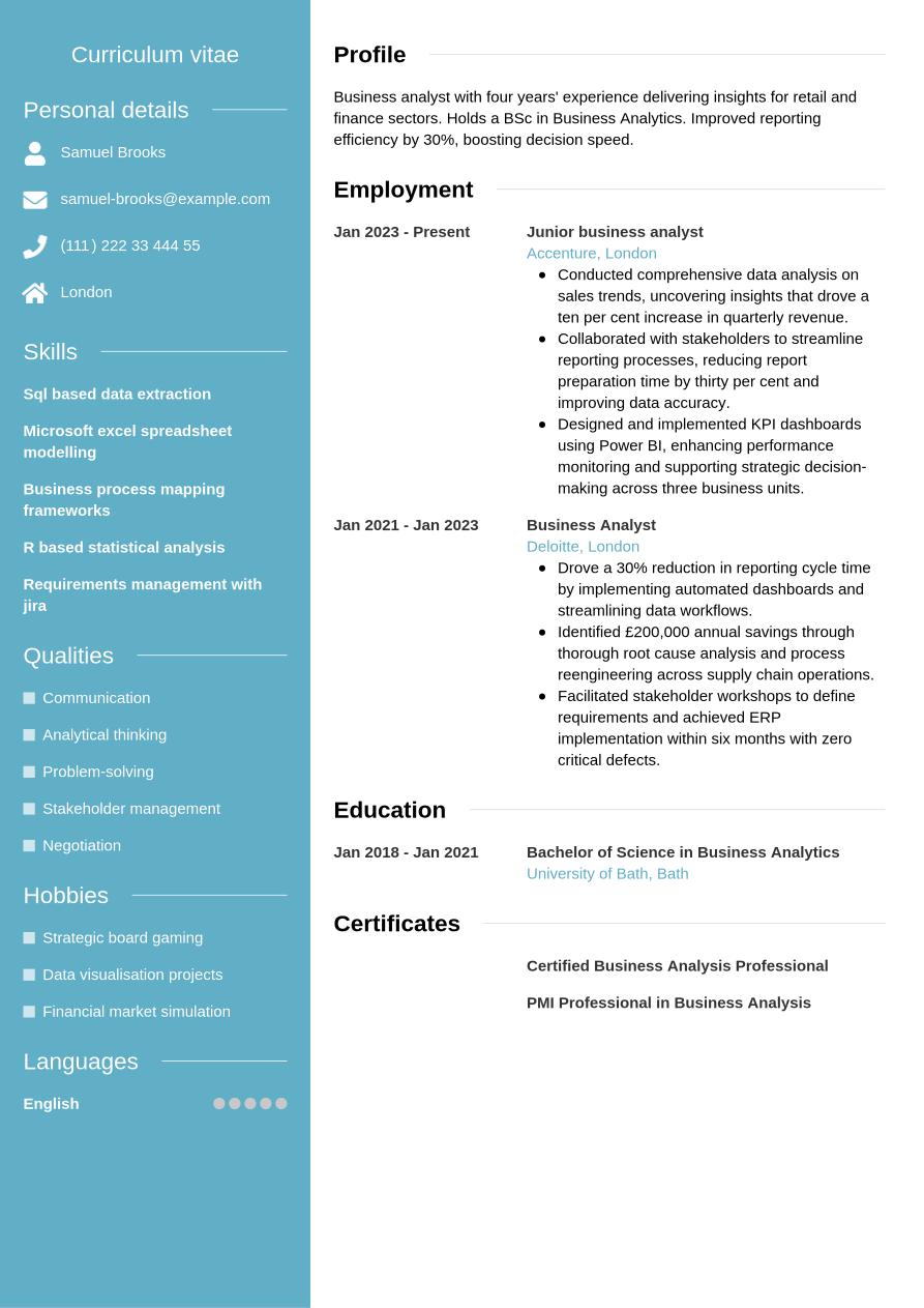 Business Analyst CV Example