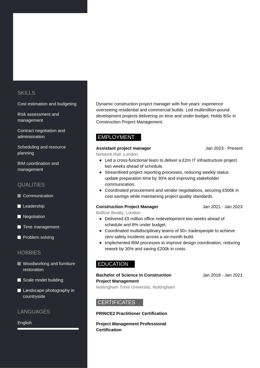 Construction Project Manager CV Example