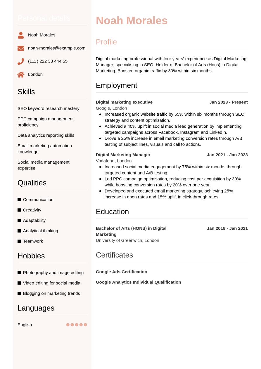 Digital Marketing CV Example