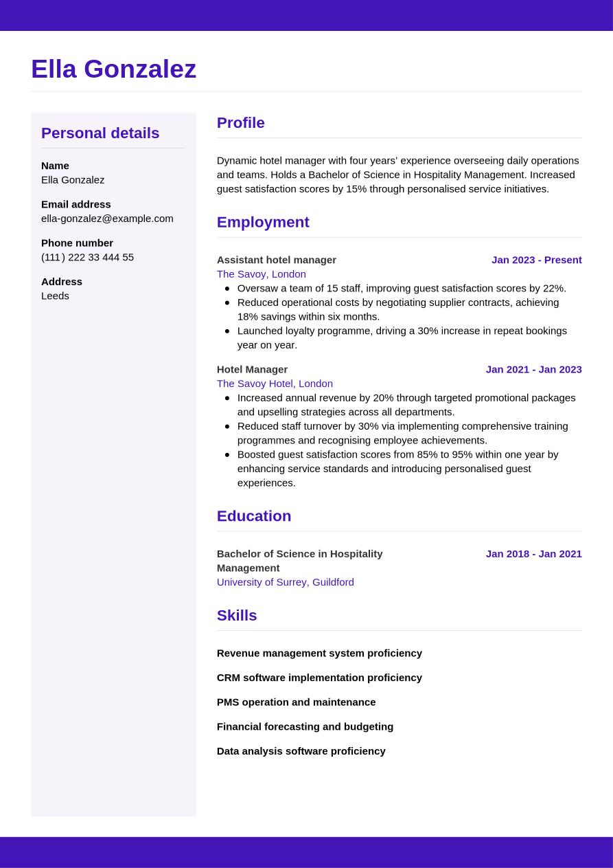 Hotel manager CV sample