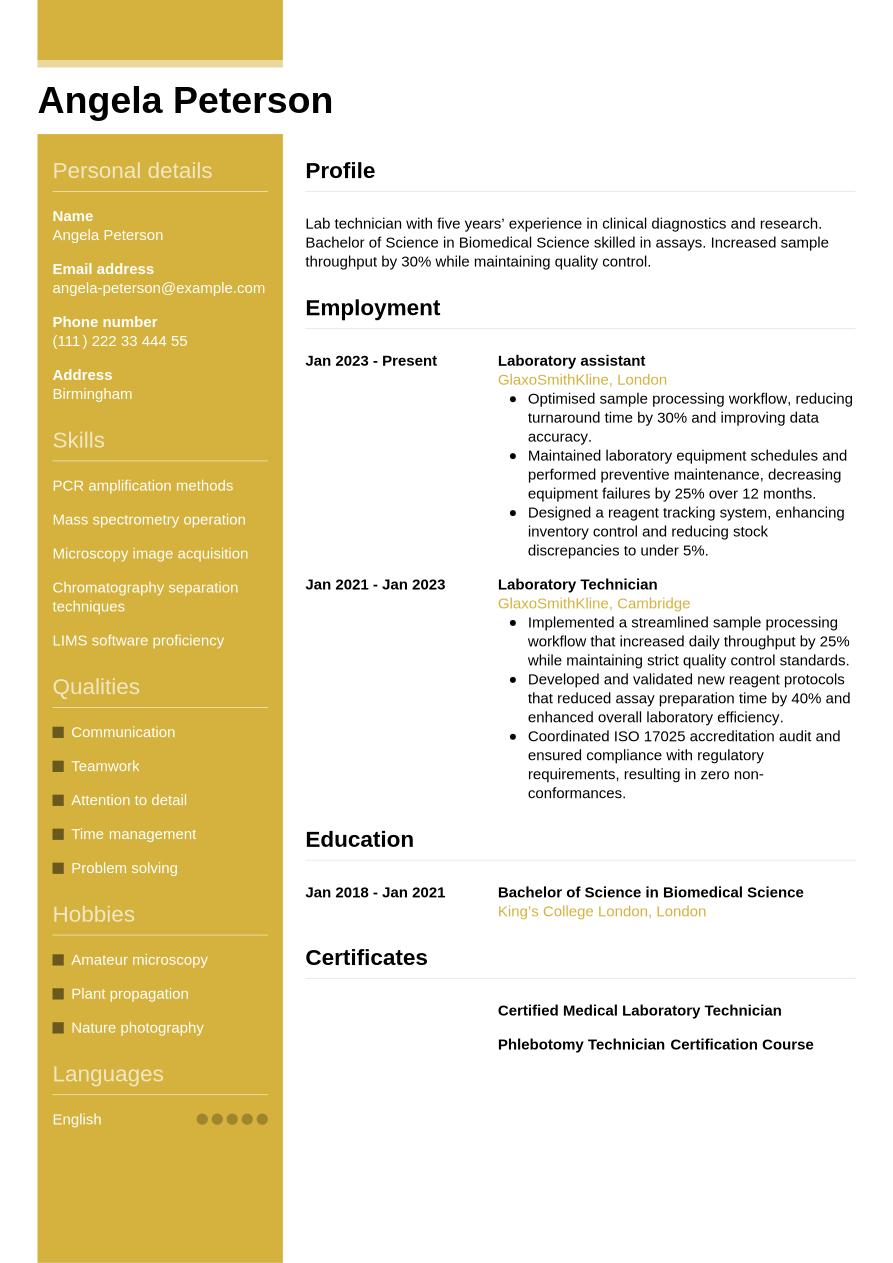 Lab technician CV sample