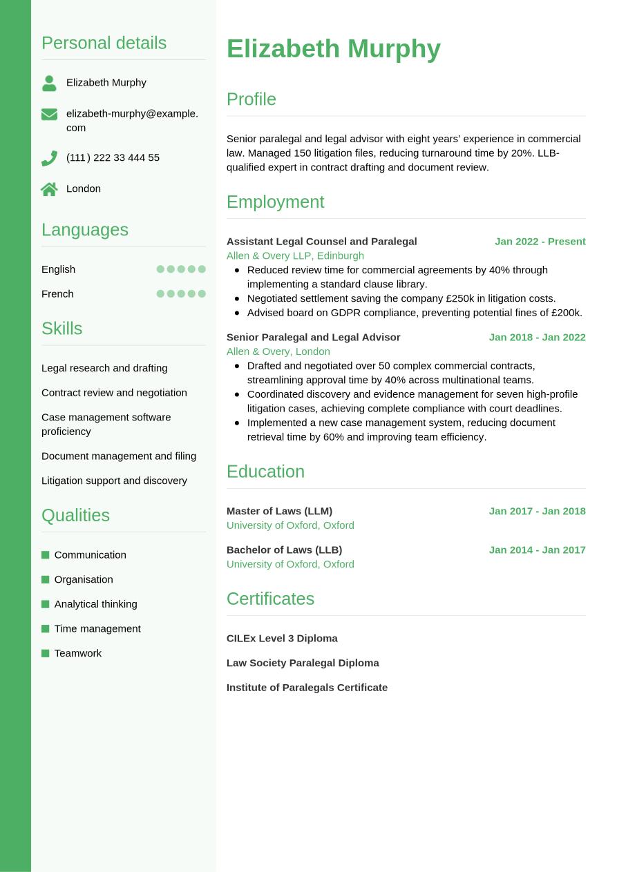 Paralegal CV Example