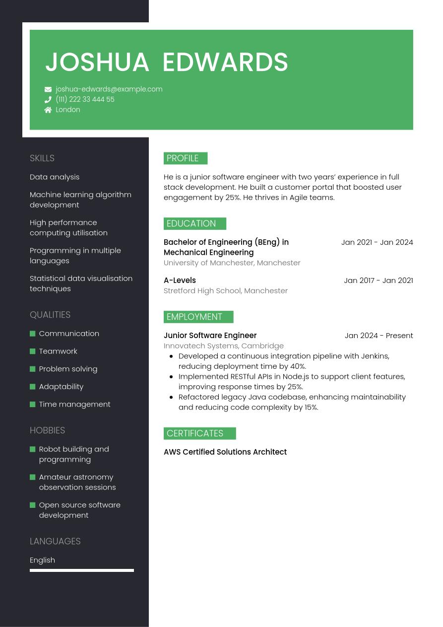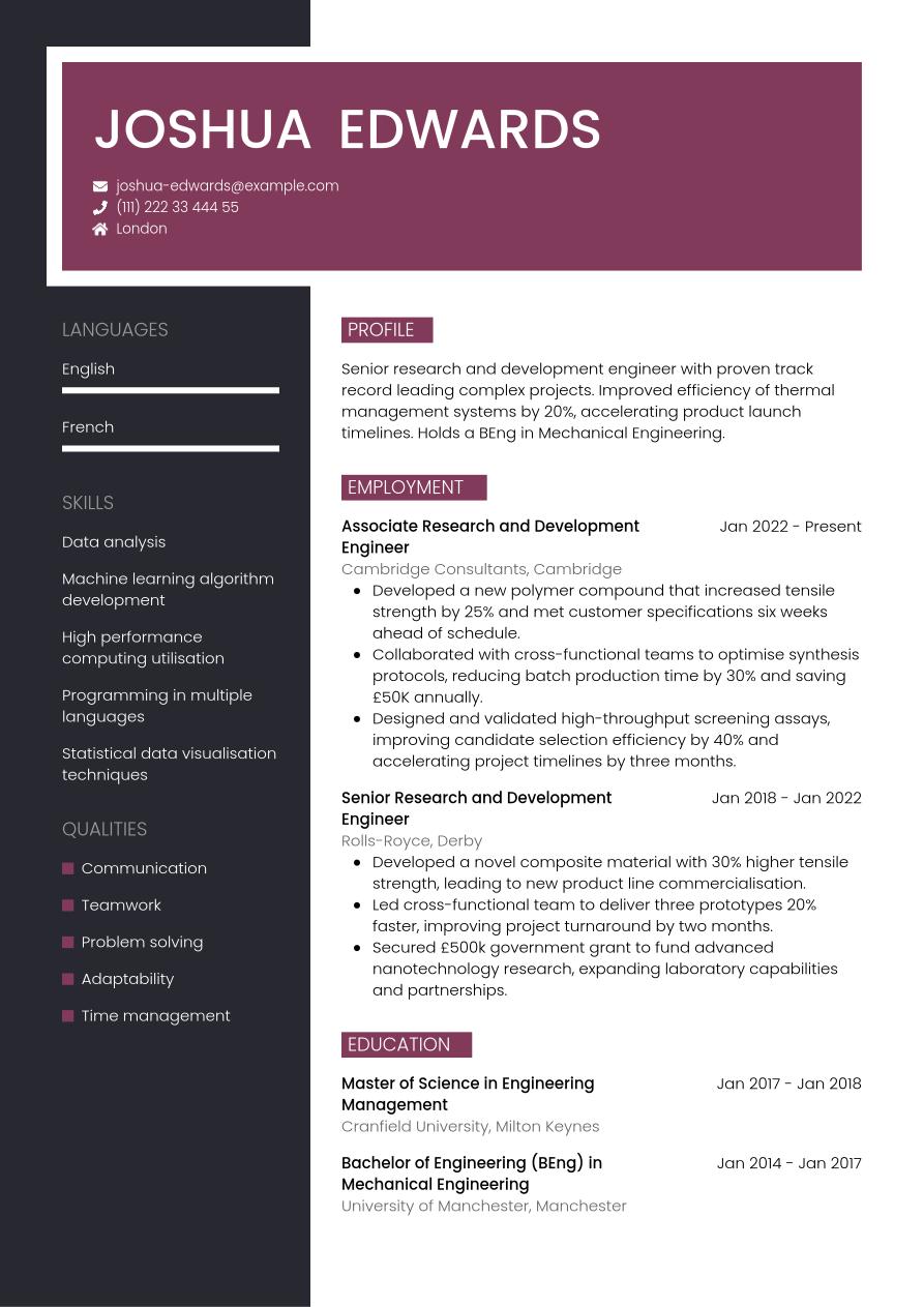 Now that you know exactly what to include in your STEM CV, we can take a look at a final, finished example below: