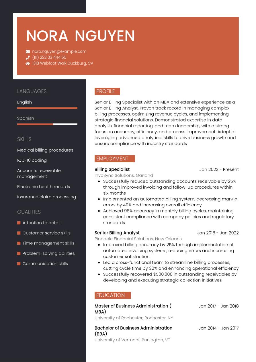 Billing Specialist Resume Example