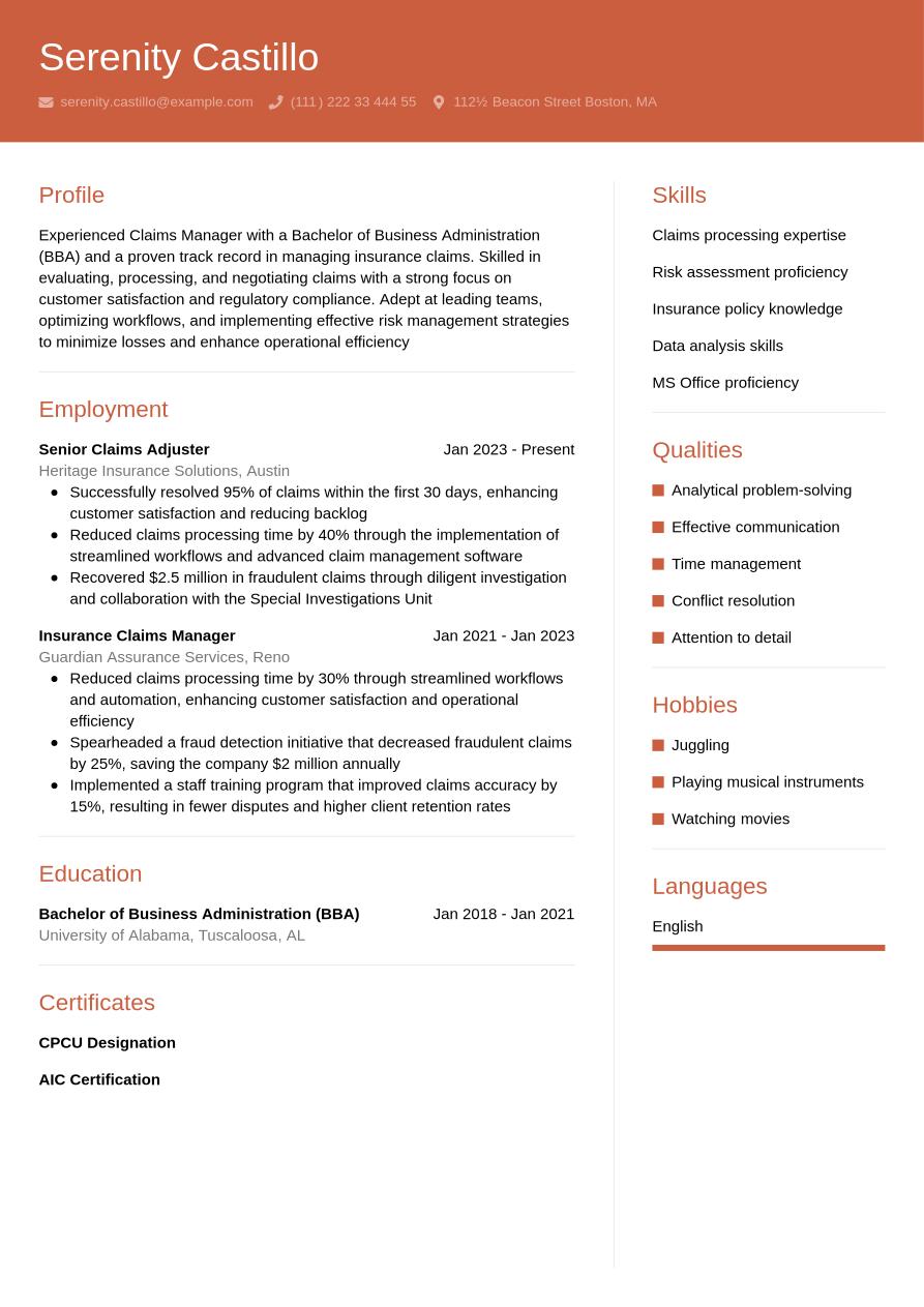 What is the best format for a claims manager resume in 2026?