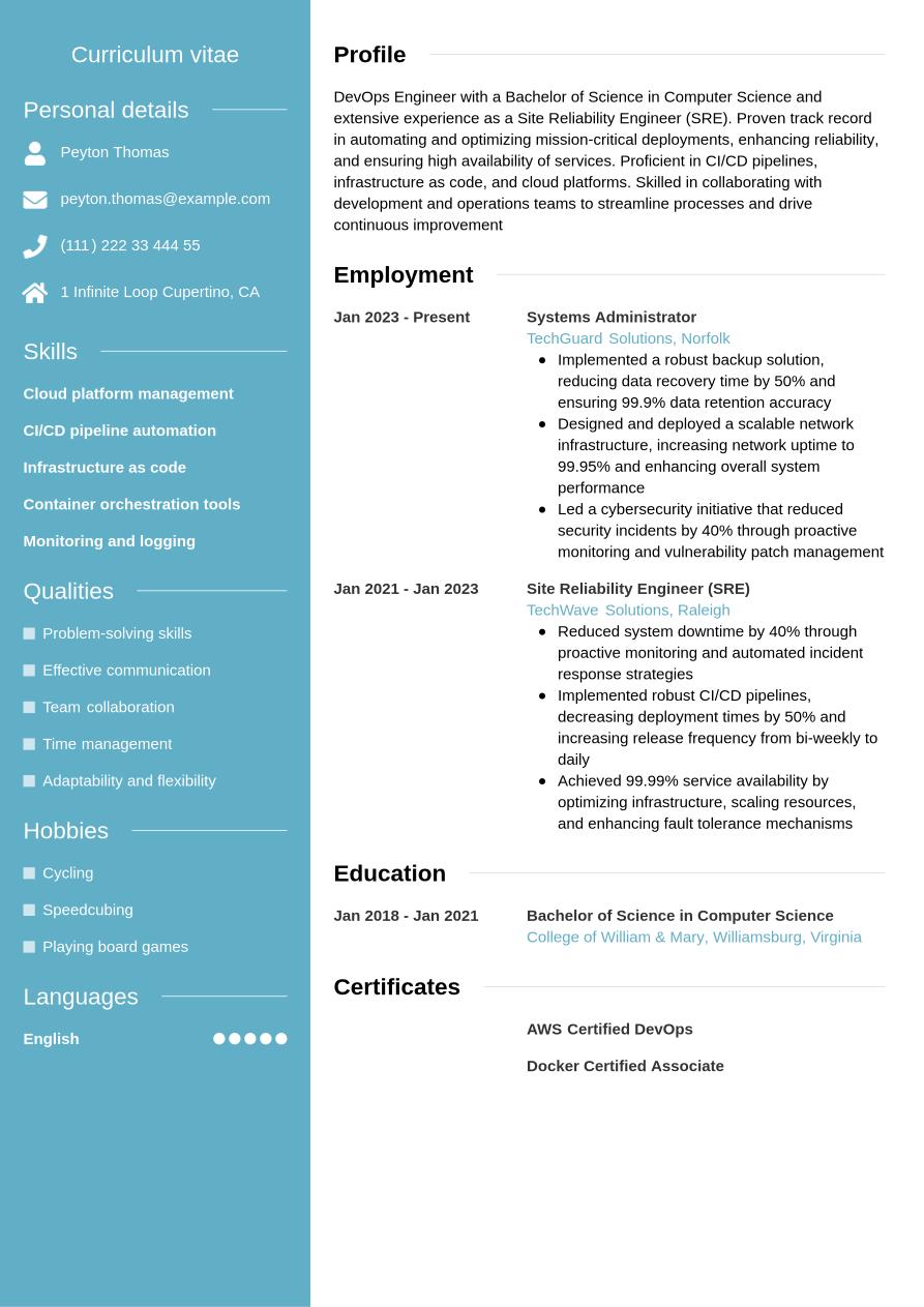 DevOps Resume Example
