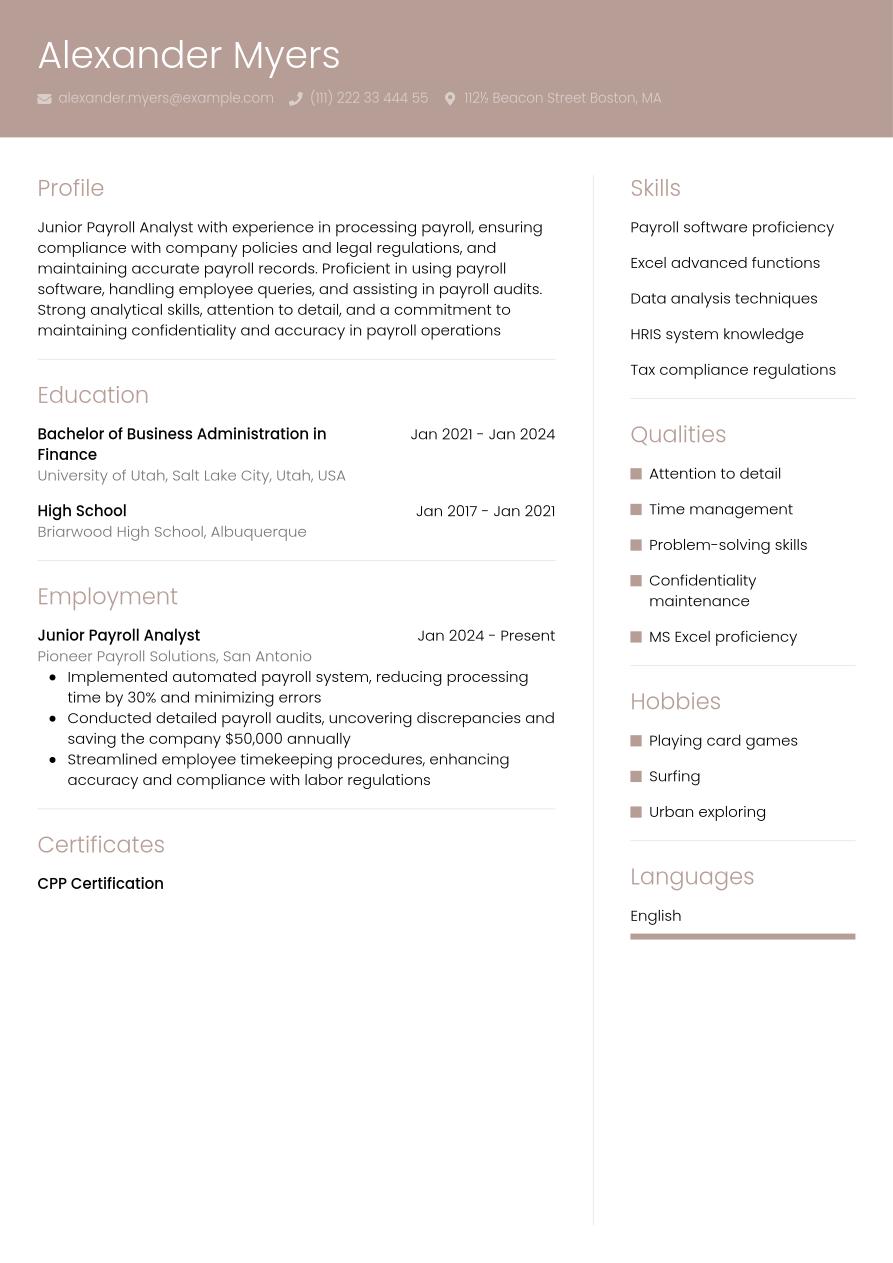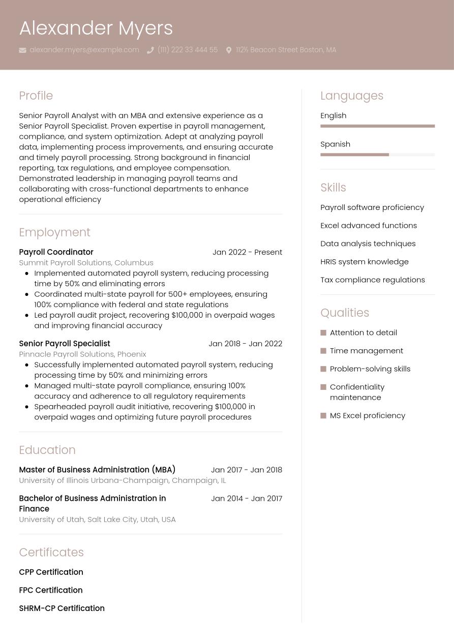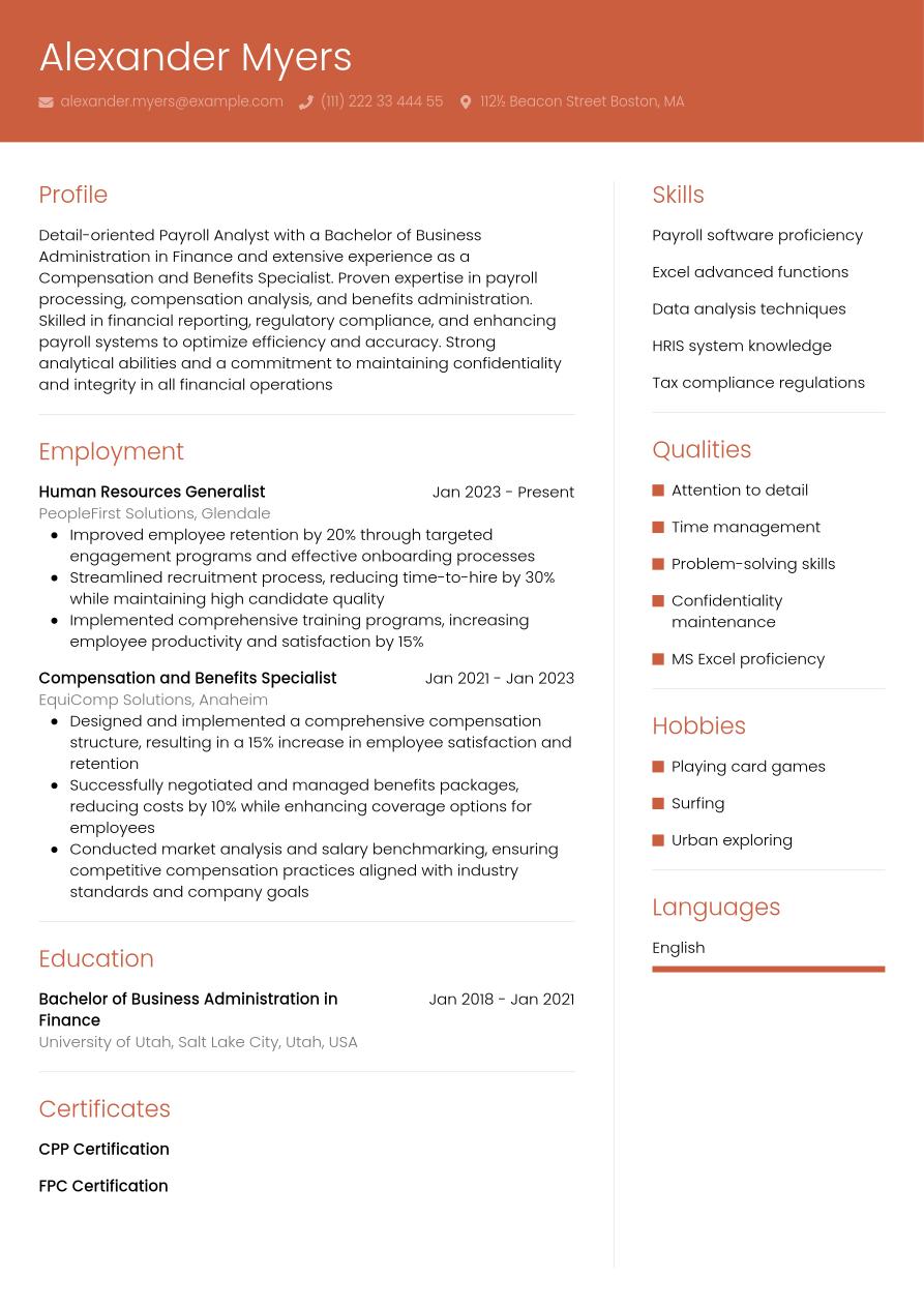 What is the best payroll analyst resume format for 2026?