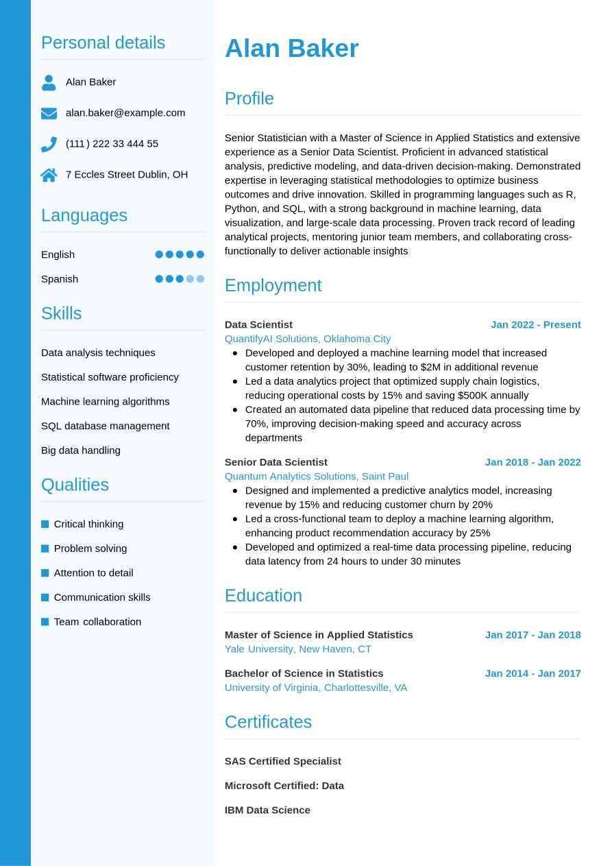 Statistician Resume Example