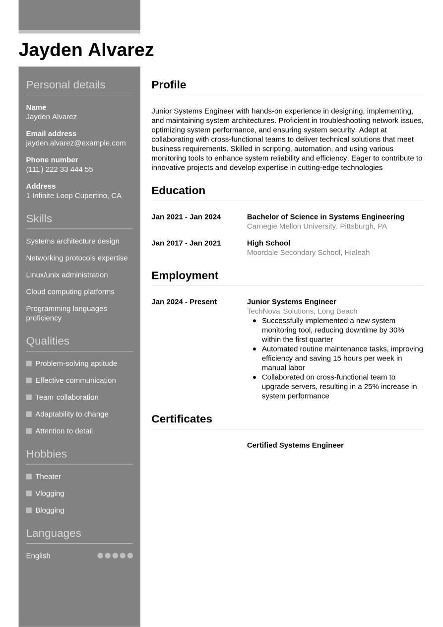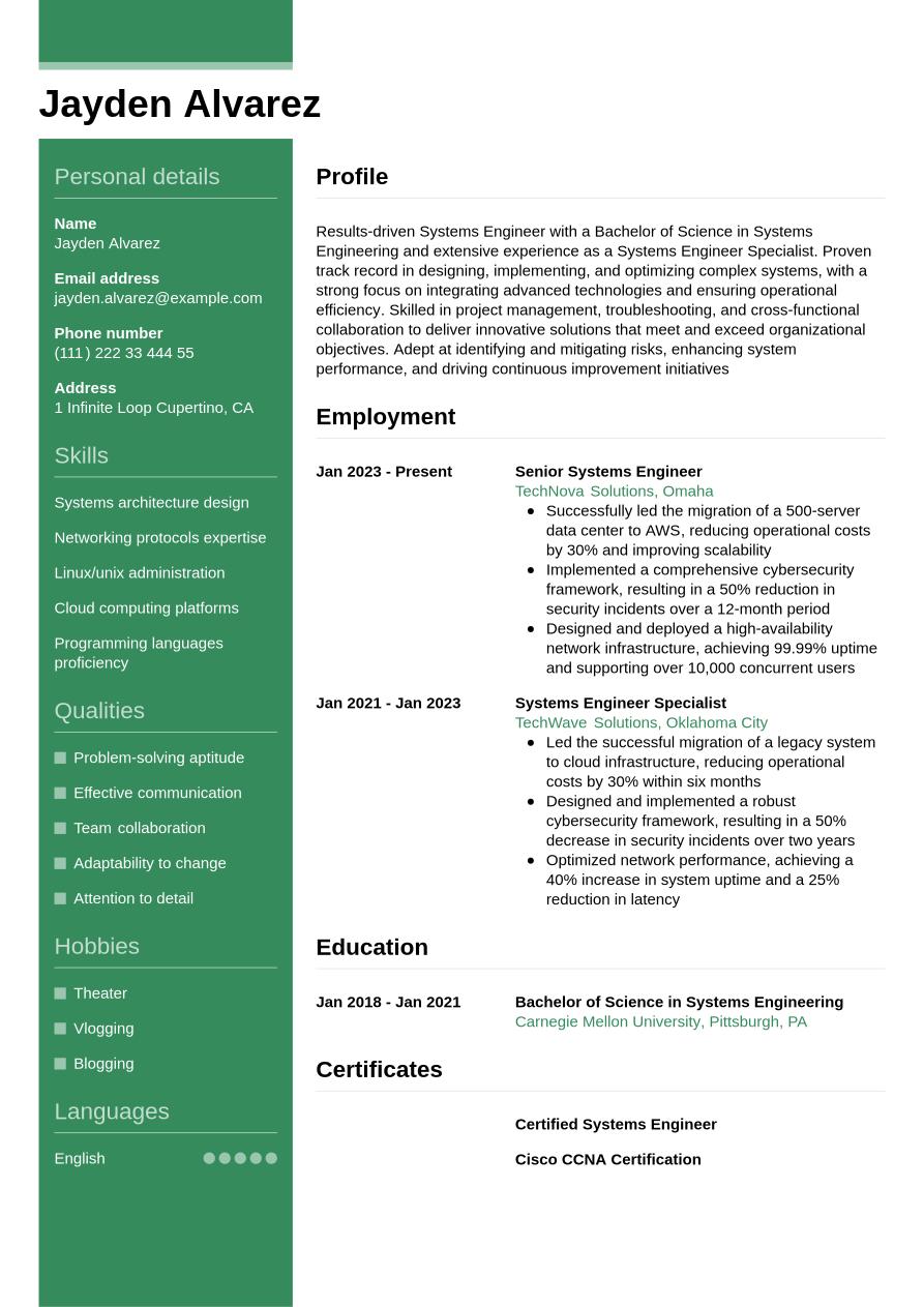 Now that you know everything that needs to go into your systems engineer resume, let's review an example resume that you can use as a guide when creating your own: