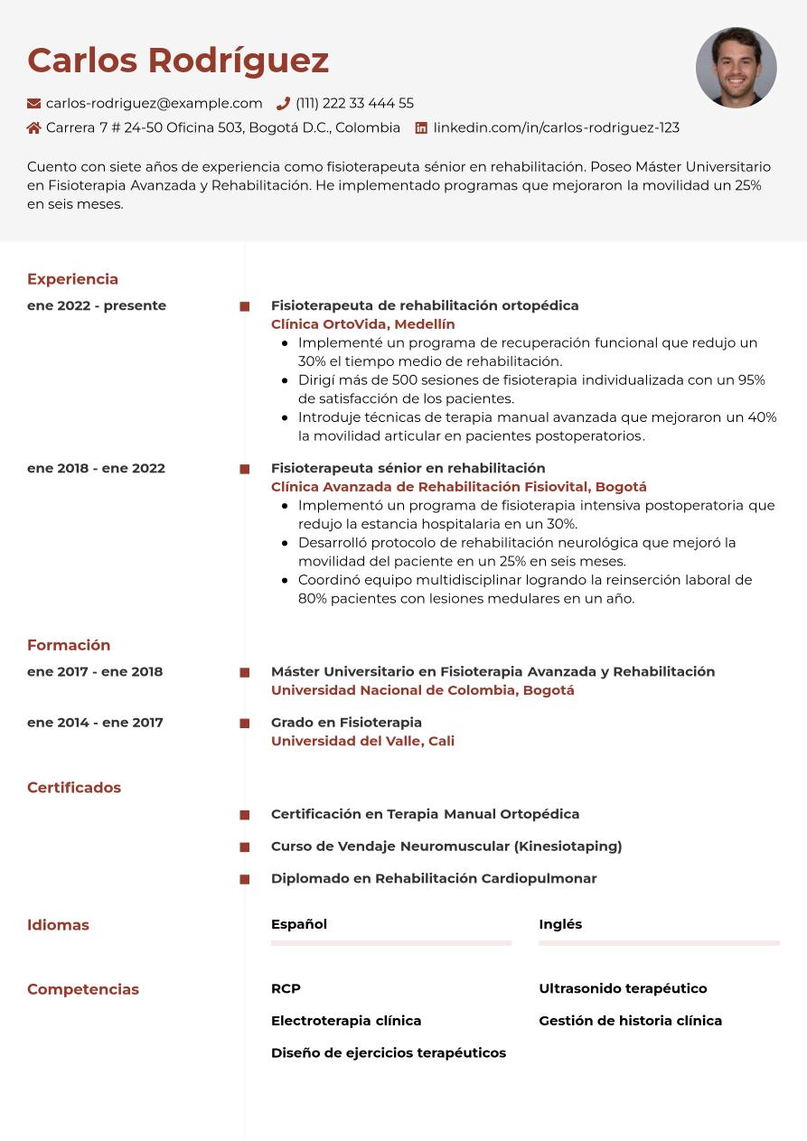 Cuando tienes una trayectoria de entre dos y cinco años, tu hoja de vida debe reflejar logros laborales relevantes, habilidades duras bien entrenadas y experiencia sólida en funciones clave, como coordinar sesiones de fisioterapia. Tu experiencia como fisioterapeuta debe centrarse en responsabilidades crecientes, logros numéricos y capacidad de autogestión. Al estar en una etapa intermedia de tu vida laboral, demostrar el aprendizaje continuo mediante certificaciones y cursos causa una buena impresión. Las habilidades de autonomía, pensamiento crítico y trabajo en equipo son cruciales.