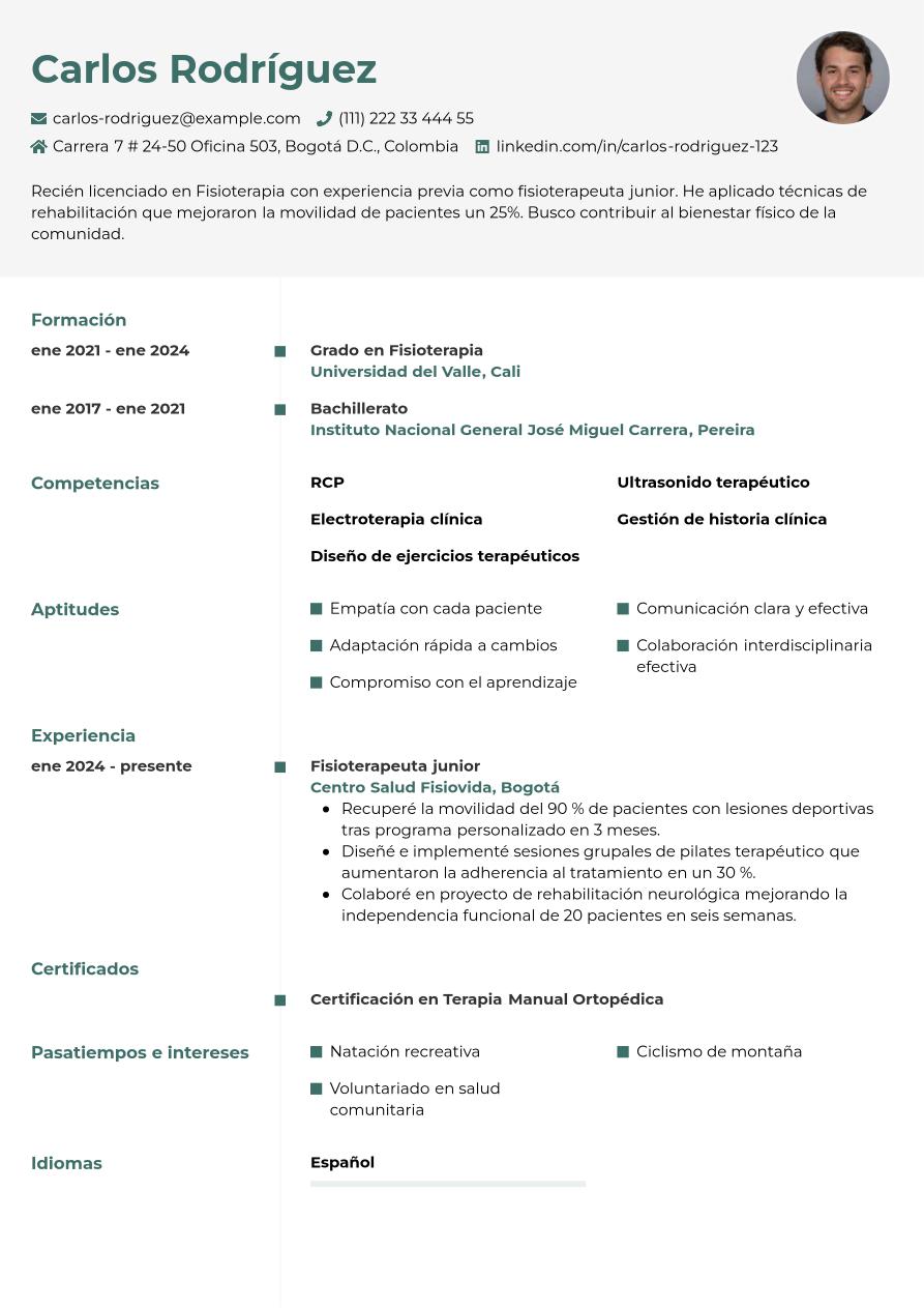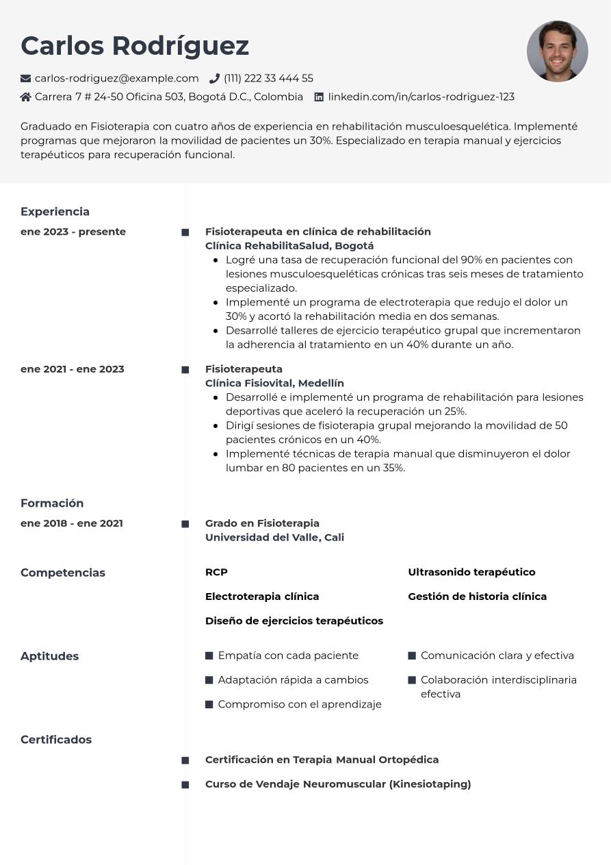 Aunque la experiencia sea poca, la hoja de vida cronológica inversa es la que más agrada a reclutadores y ATS, además de ser más sencilla que otros modelos y reflejar claramente el recorrido académico. Un fisioterapeuta con competencias transversales muy valoradas puede beneficiarse al crear una hoja de vida combinada.
