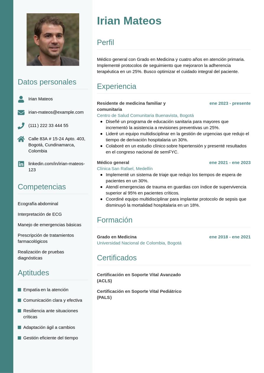 - No incluyas experiencia profesional sin valor para el cargo de médico general. Esto es perjudicial frente a ATS y reclutadores.