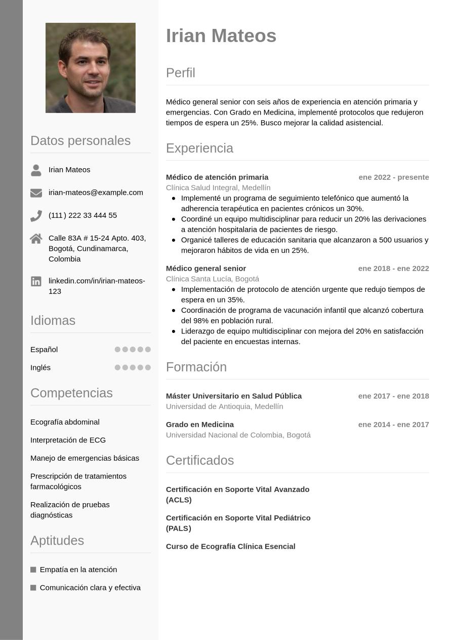 ¿Cuál es el tipo de hoja de vida recomendado para un médico general en 2026?