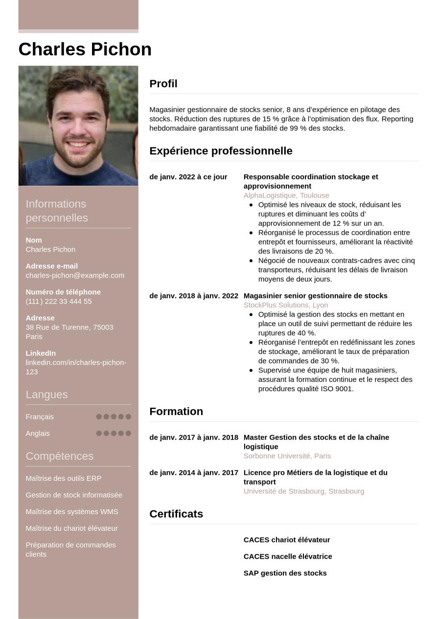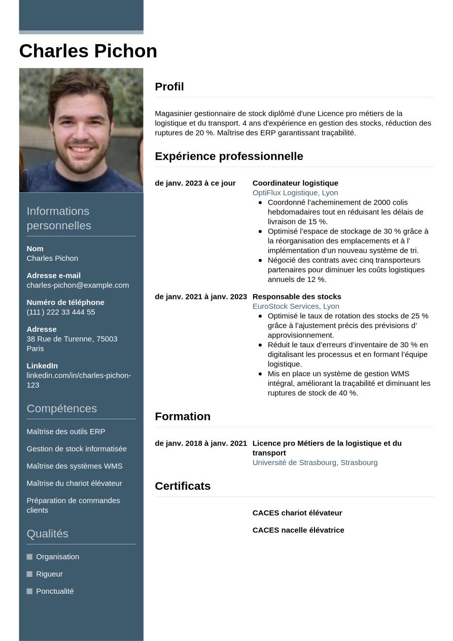Exemple de CV de magasinier gestionnaire de stock