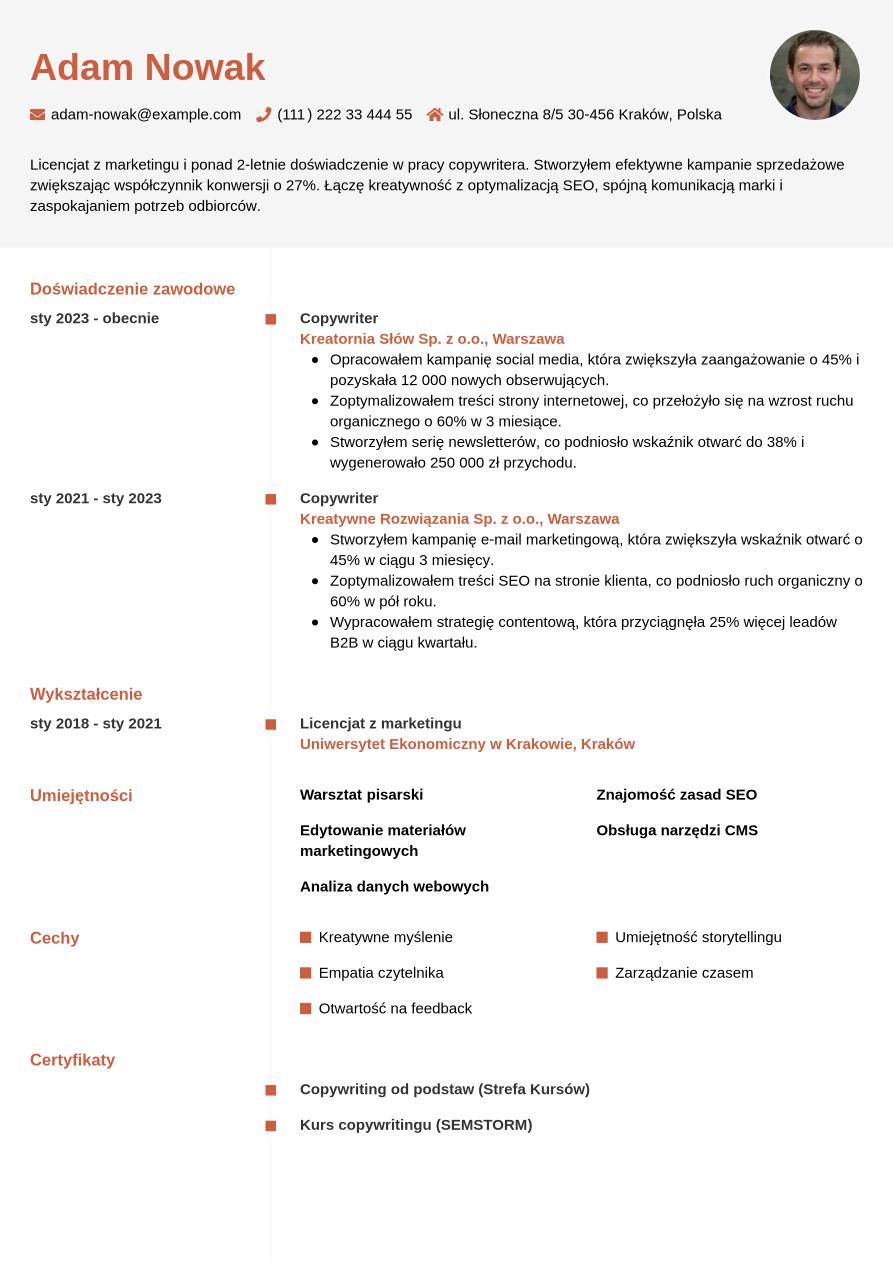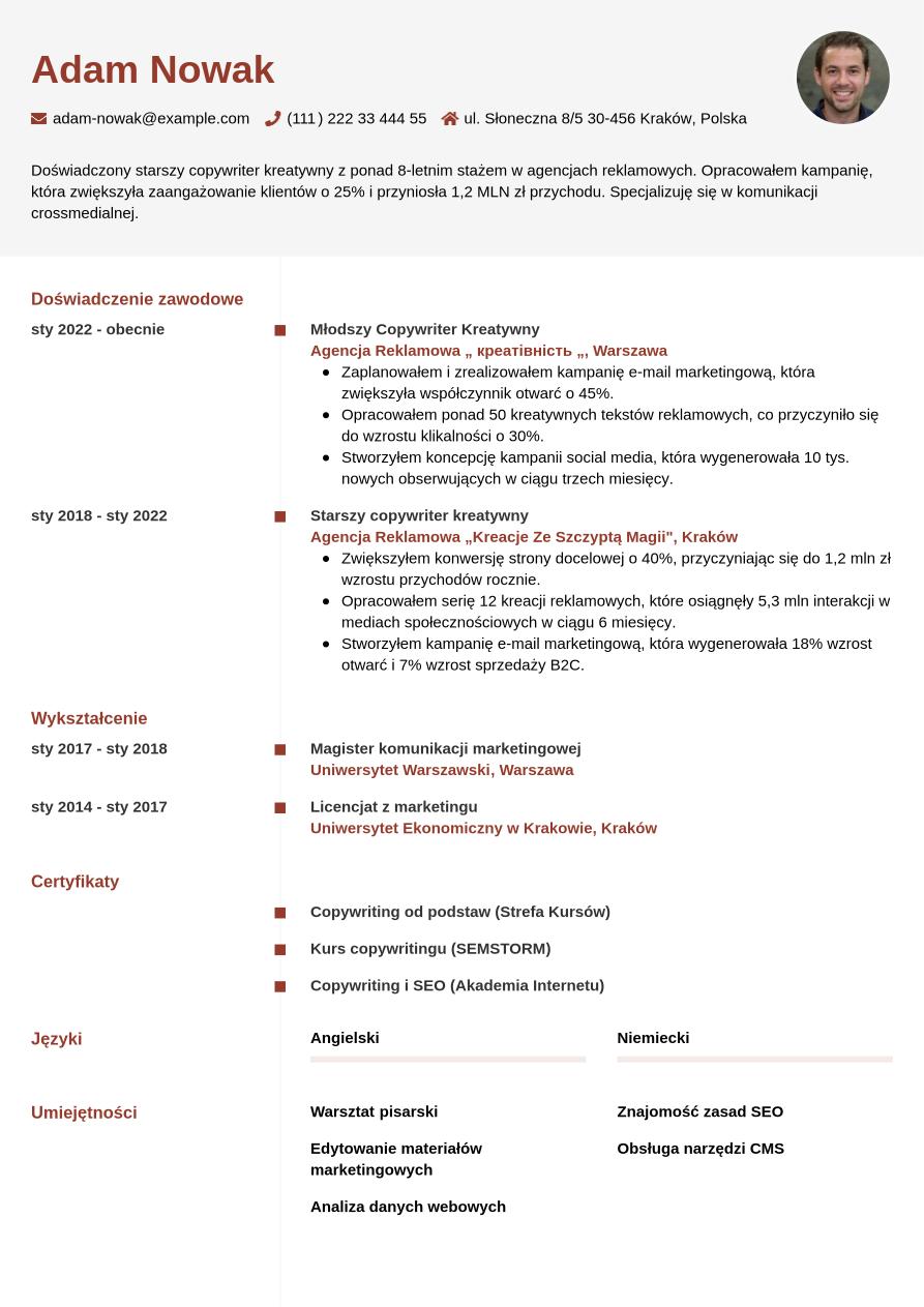 Wzór CV copywritera