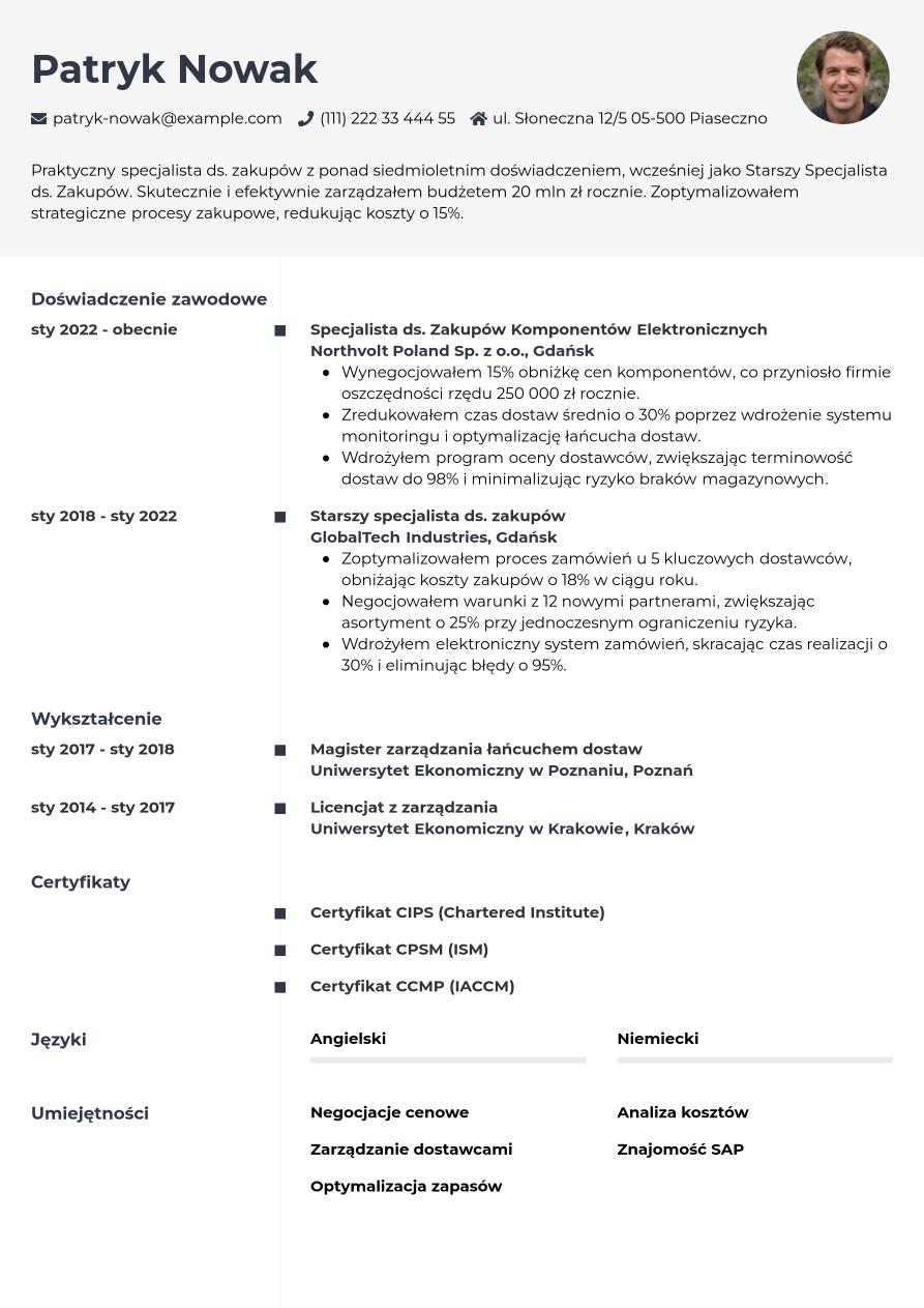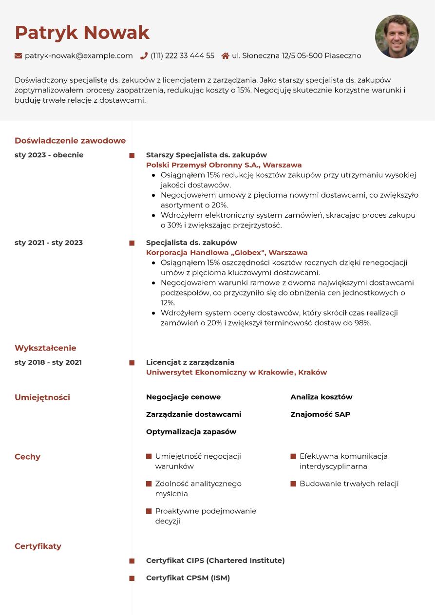 Przykład CV specjalisty ds. zakupów