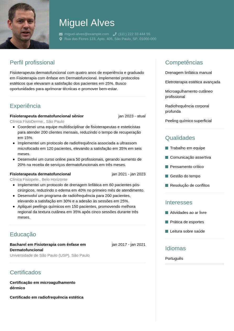 Currículo de fisioterapeuta dermatofuncional: exemplo