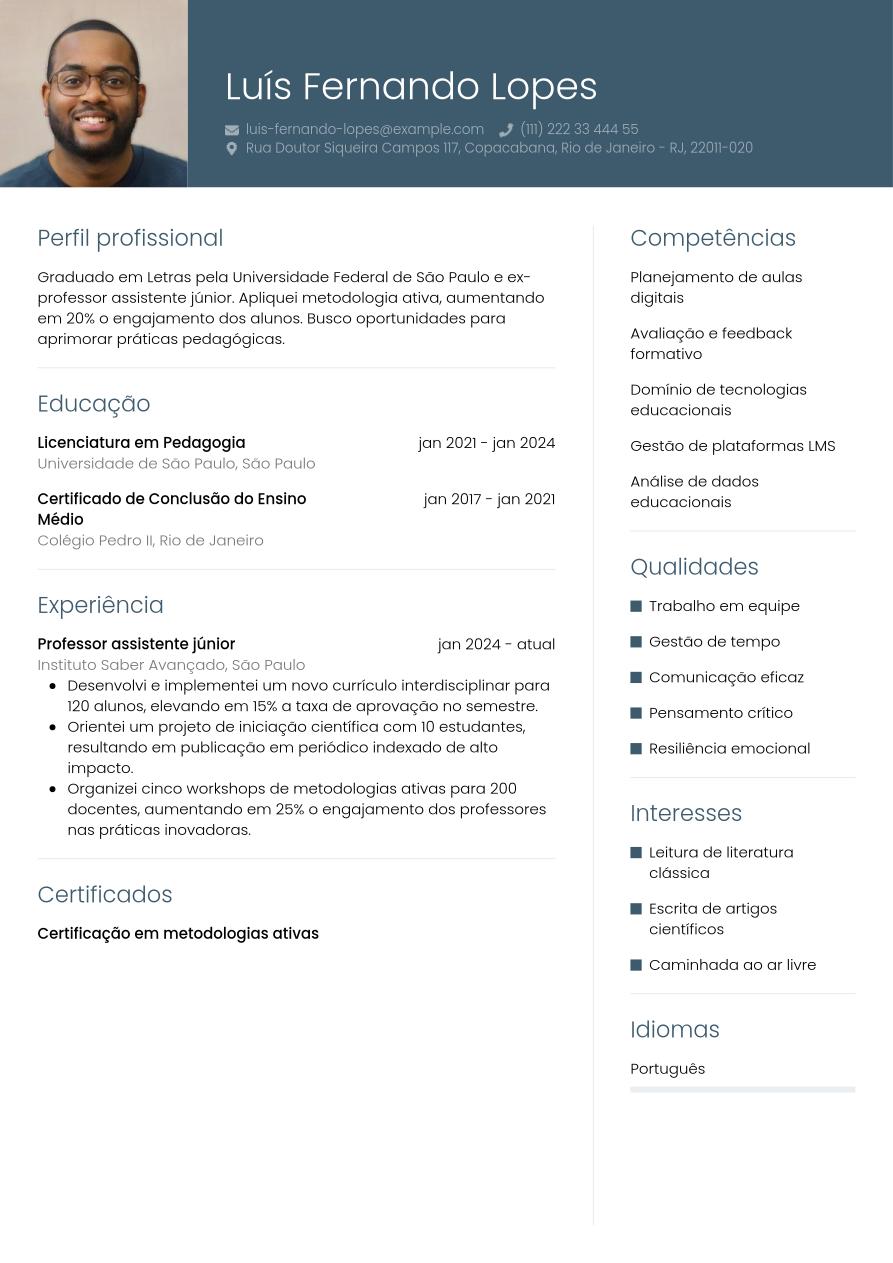 Exemplo de currículo de professor